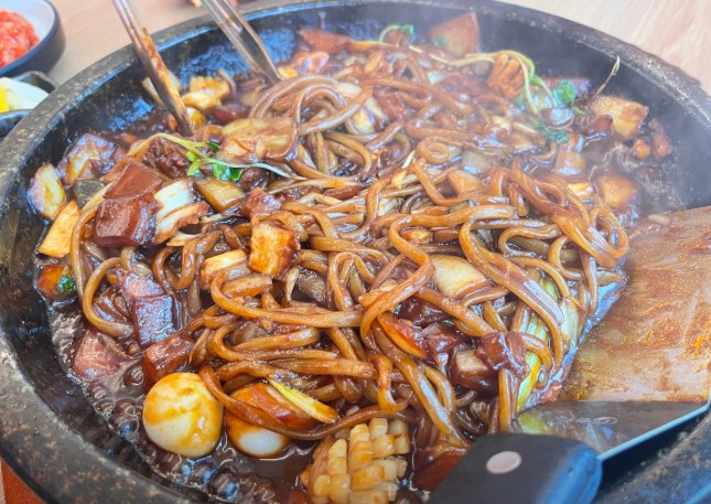 돌판짜장매운맛2단계대표: 280도 돌판에 짜장면과 신선한 해물이 듬뿍 (24,000원)