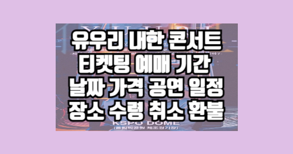유우리 내한 콘서트 티켓팅 예매 기간 날짜 가격 공연 일정 장소 수령 취소 환불에 대해 알려드리도록 하겠습니다. 이 내용을 읽어주시면 유우리 내한 콘서트 티켓팅 예매 기간 날짜 가격 공연 일정 장소 수령 취소 환불을 알아두시는 데에 도움이 될 것입니다. 유우리 내한 콘서트 티켓팅 예매 기간 날짜 가격 공연 일정 장소 수령 취소 환불의 정보가 필요하신 분들은 끝까지 읽어주세요. 아래에서 공유해드리겠습니다.