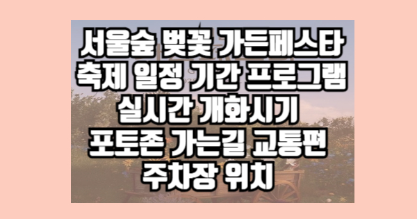 서울숲 벚꽃 가든페스타 축제 일정 기간 프로그램 실시간 개화시기 포토존 가는길 교통편 주차장 위치 를 알려드렸습니다. 도움이 되었나요? 다른 정보도 필요하시다면 상단의 글들을 참고하세요.