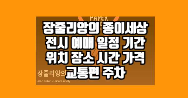 장줄리앙의 종이세상 전시 예매 일정 기간 위치 장소 시간 가격 교통편 주차를 알려드렸습니다. 모두 다 읽어주셔서 감사합니다. 다른 정보도 궁금하시다면 상단의 글들을 참고하시면 도움이 될 것입니다.
