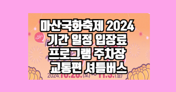 마산국화축제 2024 기간 일정 입장료 프로그램 주차장 교통편 셔틀버스를 소개해보도록 하겠습니다. 이 내용을 전체적으로 읽으면 마산국화축제 2024 기간 일정 입장료 프로그램 주차장 교통편 셔틀버스를 알게 될 것이라고 기대하고 있습니다. 마산국화축제 2024 기간 일정 입장료 프로그램 주차장 교통편 셔틀버스가 궁금하신 분들은 반드시 끝까지 읽어주세요. 이제 아래에서 모두 공유해드리겠습니다.