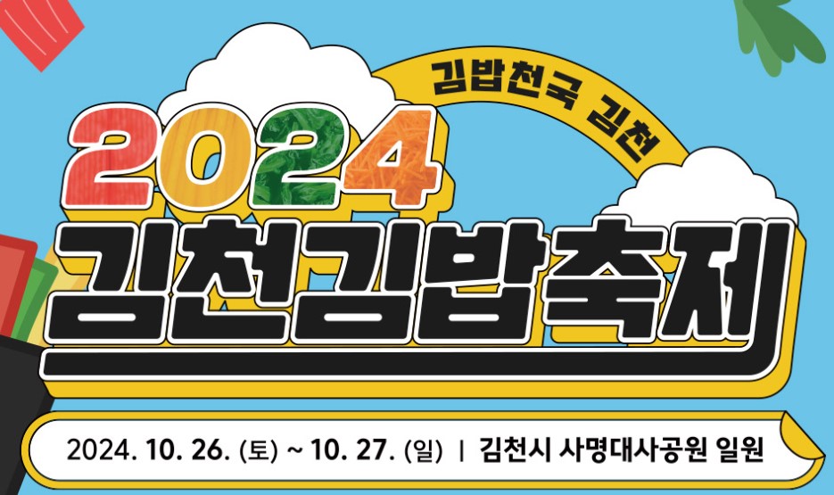 김천김밥축제 2024에 오신 여러분을 환영합니다! 이번 축제는 김천 사명대사공원과 친환경생태공원에서 열리며, 다양한 프로그램과 즐길 거리가 준비되어 있습니다. 축제에 오시는 길과 프로그램을 소개해드릴게요.