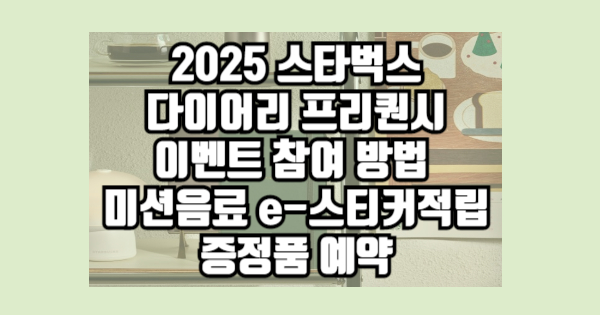 2025 스타벅스 다이어리 프리퀀시 이벤트 참여 방법 미션음료 e-스티커적립 증정품 예약에 대해 알려드렸습니다. 읽어주셔서 감사합니다. 다른 정보도 필요하시다면 상단의 글들을 참고해주세요.
