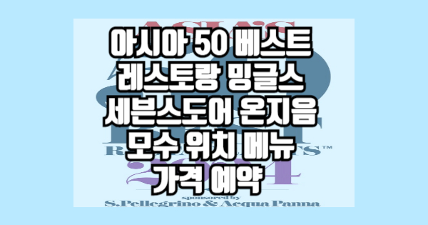 아시아 50 베스트 레스토랑 밍글스 세븐스도어 온지음 모수 위치 메뉴 가격 예약 를 알려드렸습니다. 도움이 되었나요? 추가적으로 궁금하신 게 있다면 상단의 글들을 참고하시면 됩니다.