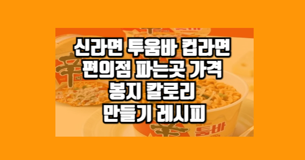 신라면 투움바 컵라면에 대해 자세히 알아보려고 합니다. 최근에 편의점에서 신상으로 출시된 이 라면은 많은 사람들의 관심을 받고 있는데요, 그럼 지금부터 신라면 투움바 컵라면에 대해 하나씩 살펴보겠습니다.