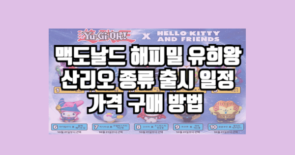 이번 맥도날드 해피밀 유희왕 x 산리오 콜라보는 정말 특별해요. 두 인기 캐릭터의 만남이라니, 생각만 해도 설레지 않나요?이 귀여운 토이들을 놓치면 정말 후회할 거예요.