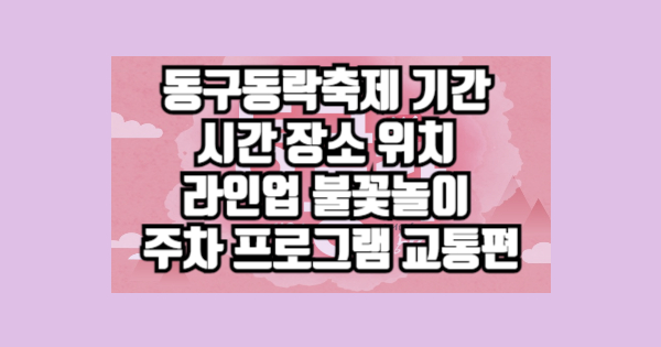 동구동락축제 기간 시간 장소 위치 라인업 불꽃놀이 주차 프로그램 교통편에 대해서 알아보았습니다. 읽어보니 어떠신가요? 추가적으로 필요하신 정보가 있다면 위의 글들을 참고하시면 도움이 될 것 같습니다.