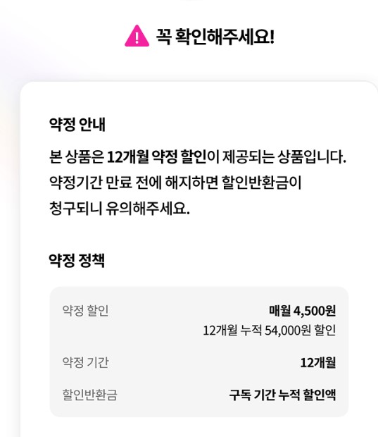 - 1년 약정형 상품으로, 약정 기간 내 해지 시 할인 반환금이 청구될 수 있습니다.
