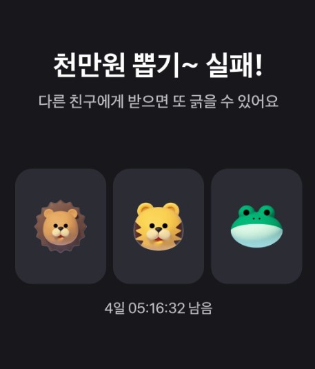 - 선물 받은 사람이 복권 링크를 열어보면 당첨 여부를 확인 할 수 있습니다.
